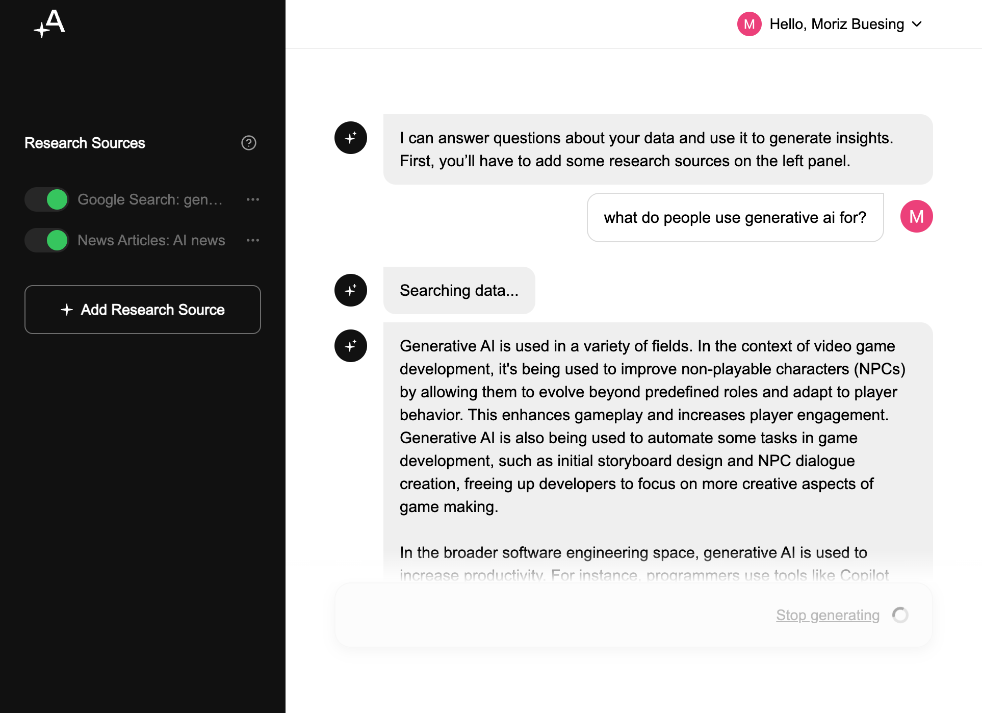 AI for creatives: upload files for an AI to analyse, or let it search google for keywords, and come up with creative ideas for marketing or unique insights about the material.