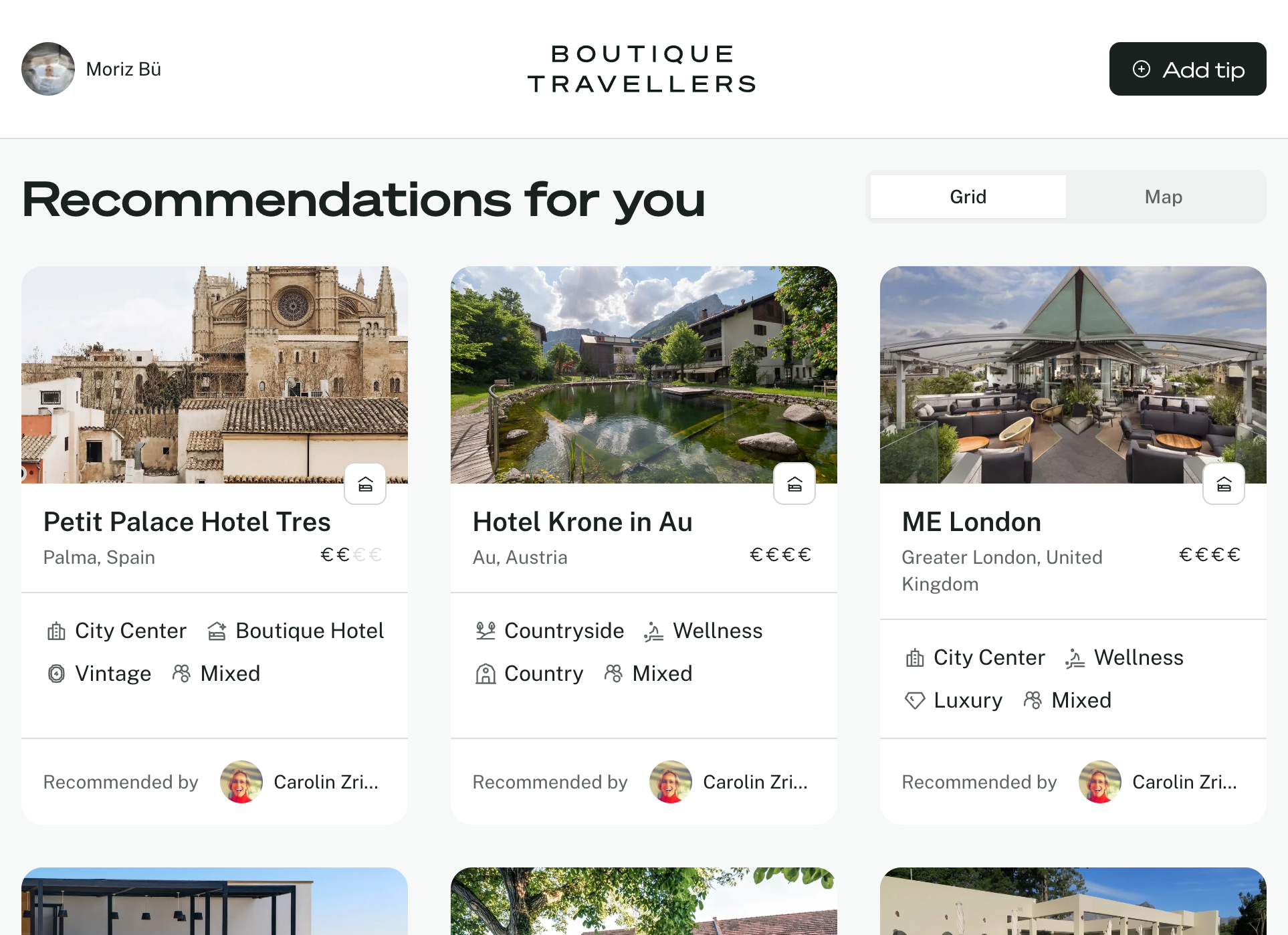 Lifestyle travel platform featuring instant accommodation search and filtering. Map view with clustered accommodation layers. Built with Next.js and Supabase