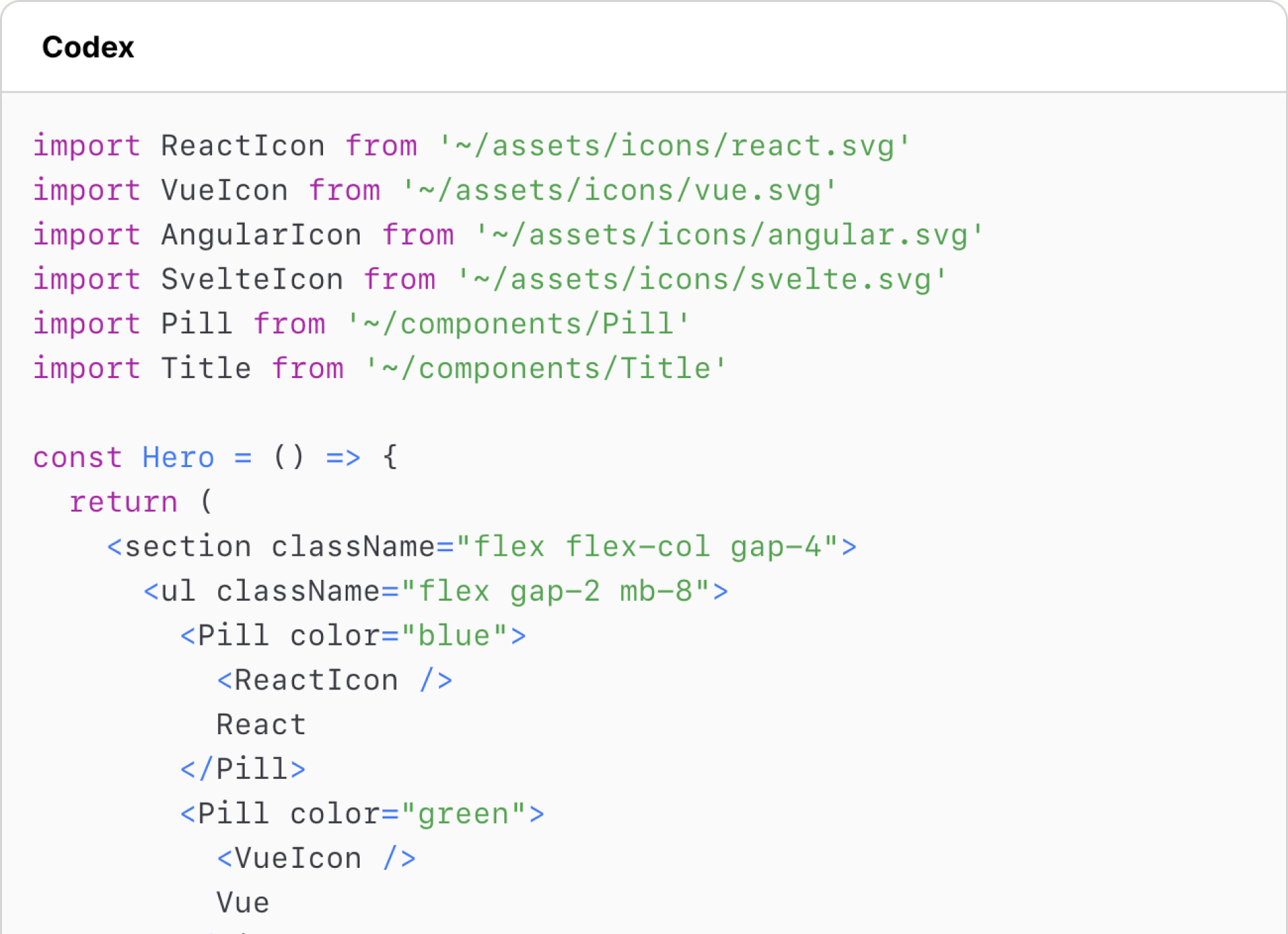 • Select a node and click 'generate', and Codex will use your existing components and conventions to generate code.