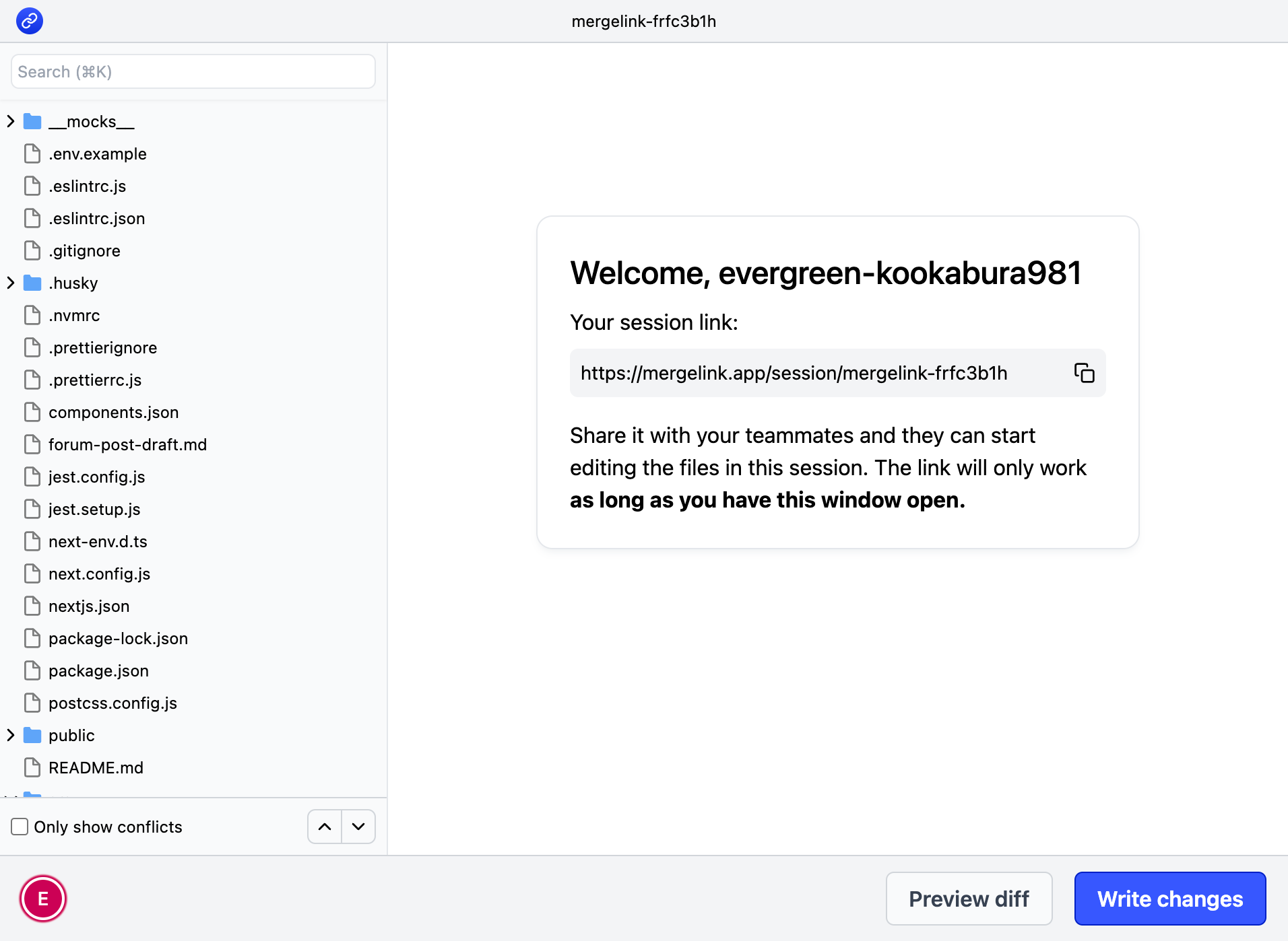 Collaborative tool for developers that streamlines solving git merge conflicts. Built with React, Next.js and Yjs.