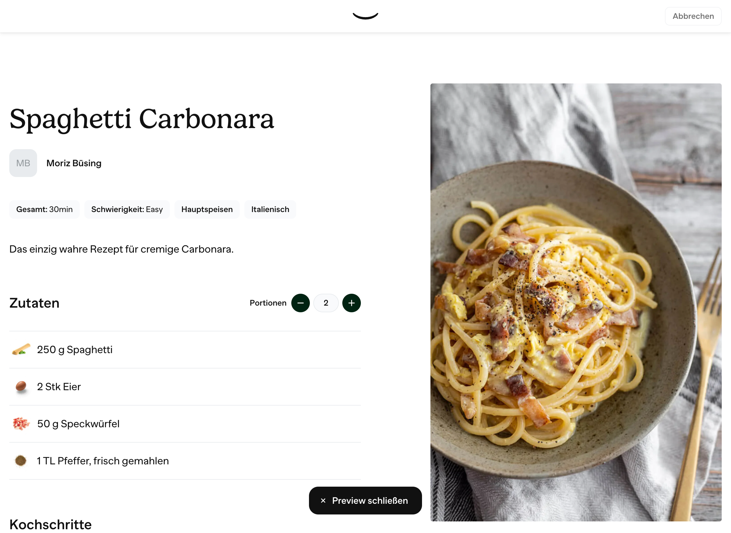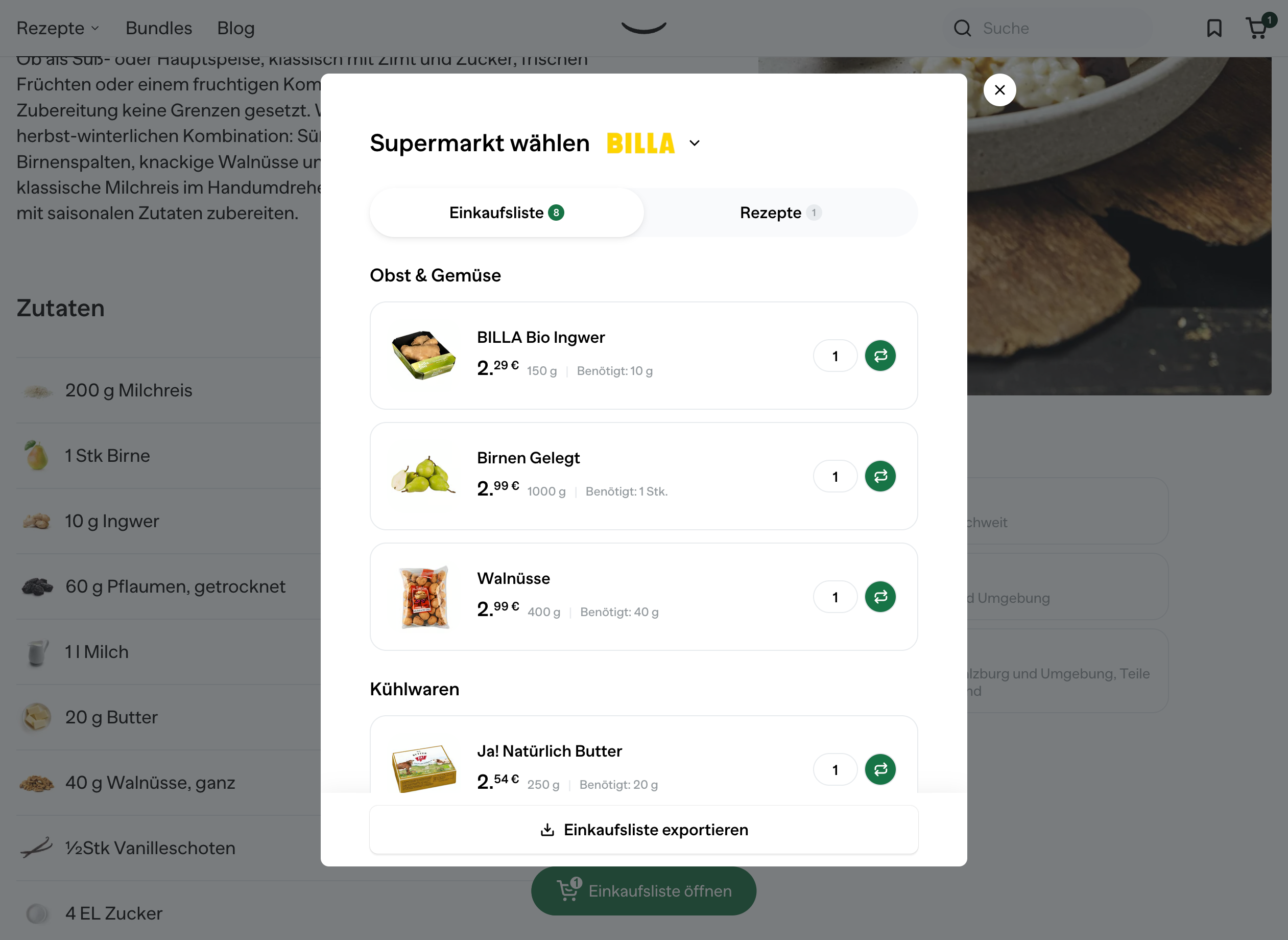 Recipe platform featuring interactive recipe creation and automatic shopping list generation. Seamlessly converts cooking recipes into shopping lists for online supermarkets. Built with React and Next.js