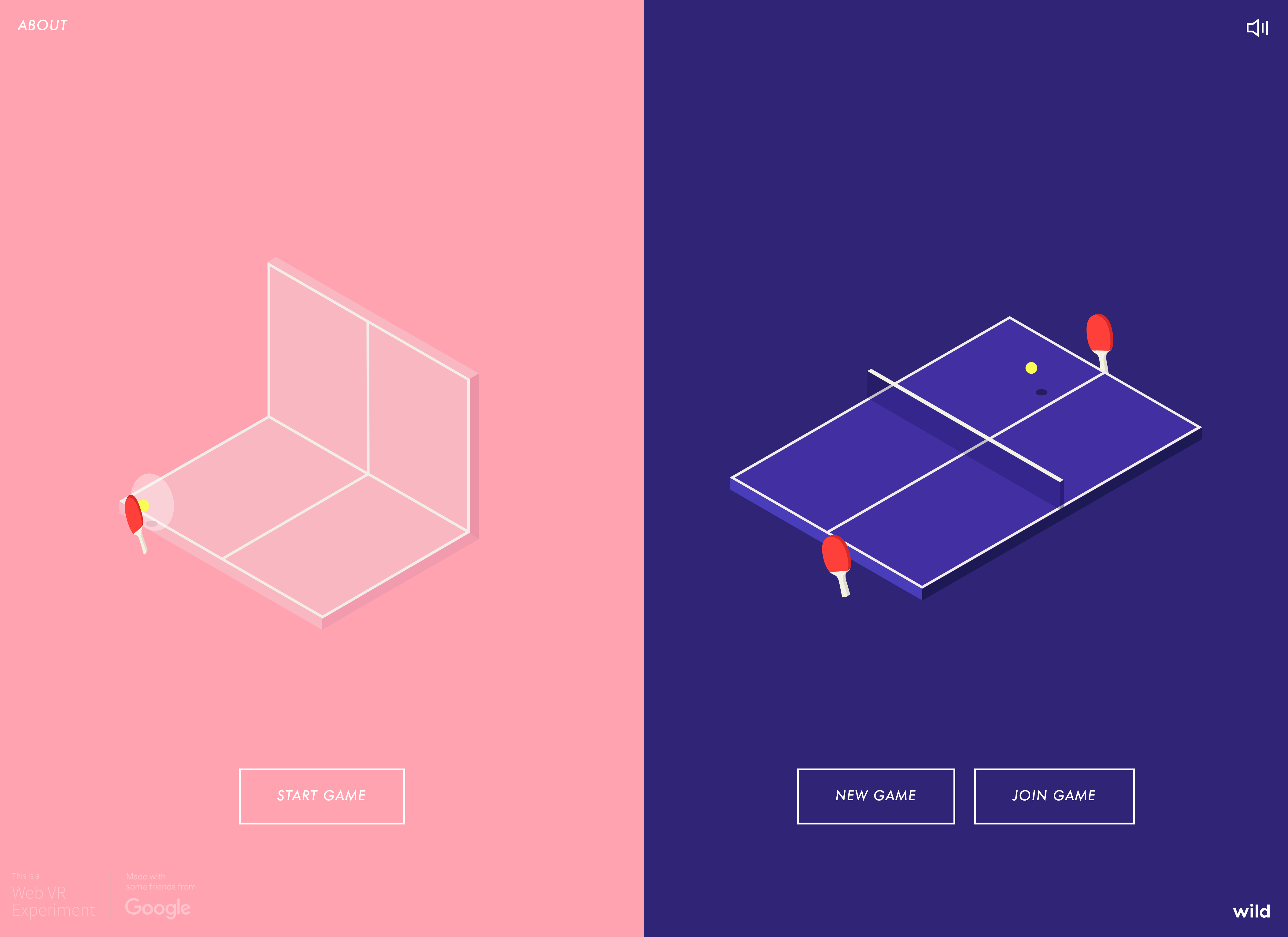 WebVR ping pong game built for Chrome Experiments, featuring browser-based VR gameplay and live multiplayer mode for playing against others online.